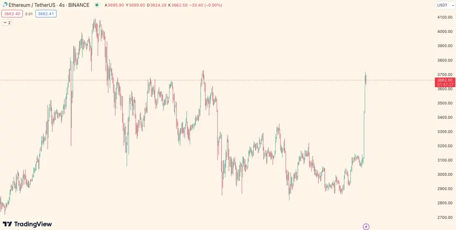 Tüm bu haber akışı, uzun süredir BTC paritesinde düşüş yönlü ilerleyen ve beklentilerin altında kalan ETH’yi harekete geçirdi. ETH, haber akışının gündeme düştüğü andan itibaren yüzde 20’ye yakın artış kaydetti. ETH fiyatı, bu süreçte 3.100 dolardan 3.700 dolara yükseldi.