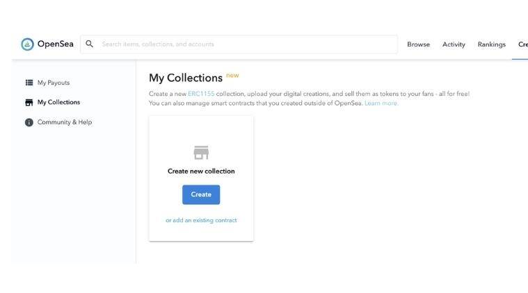 OpenSea kontrol panelinde önce ‘My Collection’ ve sonrasında da ‘Create New Collection” butonlarına tıklayın.
